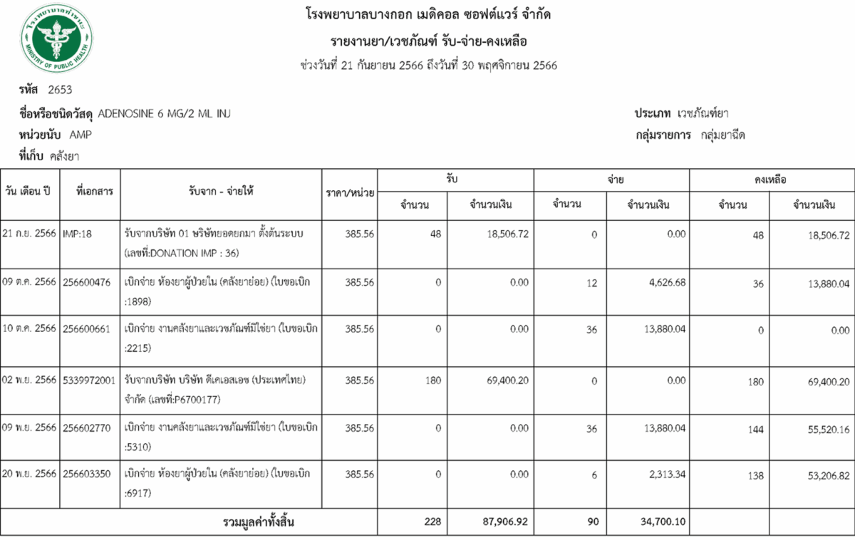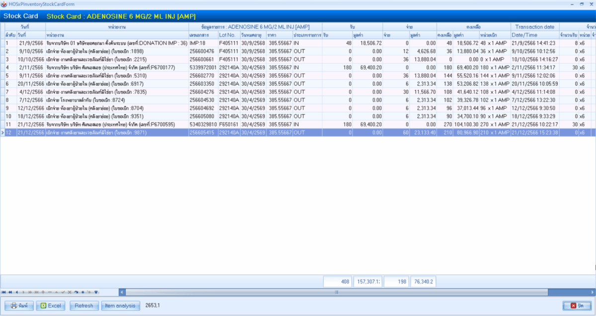 • สามารถตรวจสอบข้อมูล Stock Card ได้และ Export เป็นไฟล์ Excel ได้
