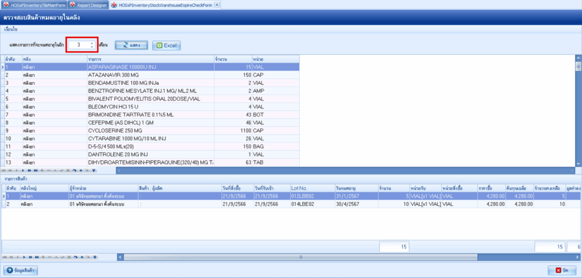 • สามารถเลือกช่วงระยะเวลาที่ต้องการดูข้อมูลสินค้าที่หมดอายุได้