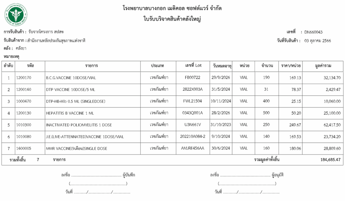 • สามารระบุประเภทการรับได้ เช่นรับจากการสนับสนุน , รับจากโครงการสปสช. ฯลฯ