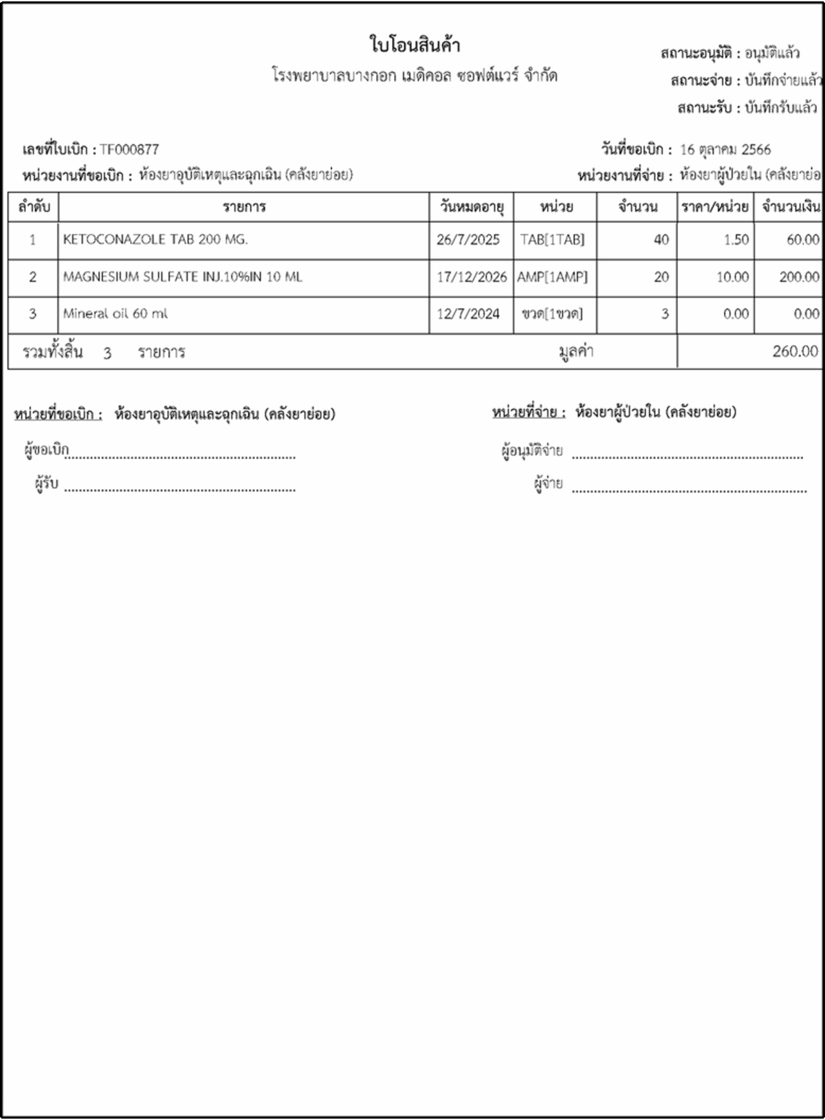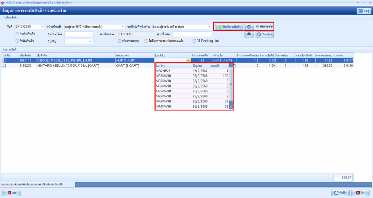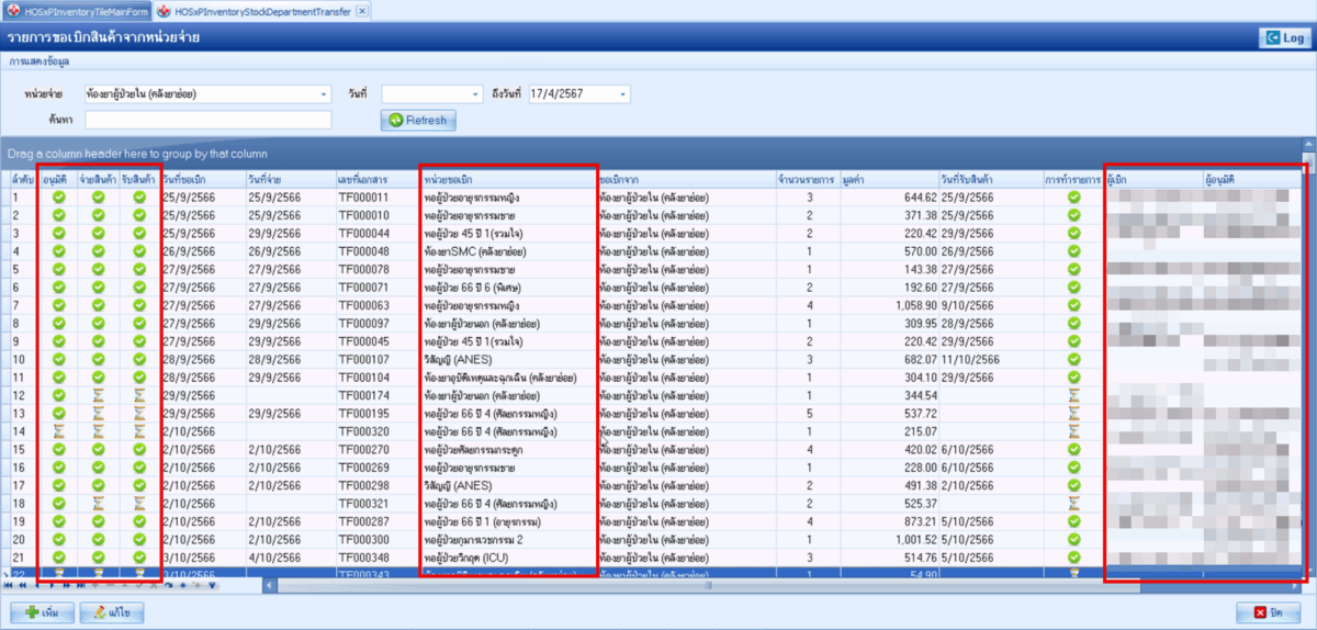 BMS INVENTORY ระบบโอนสินค้าระหว่างคลังย่อย ระบบโอนสินค้าระหว่างคลังย่อย มีความสามารถ ดังนี้ สามารถโอนรายการระหว่างคลังย่อยได้สามารถตรวจสอบสถานะการจ่ายสินค้าได้จ่ายสินค้าไปแล้วหรือยังสามารถพิมพ์เอกสารการโอนได้ แสดงหน้าจอรายการขอเบิกสินค้าจากหน่วยจ่าย แสดงหน้าจอการบันทึกข้อมูลรายการขอเบิกสินค้าจากหน่วยจ่าย เอกสารแบบฟอร์มใบโอนสินค้าระหว่างหน่วยงาน ← ย้อนกลับ