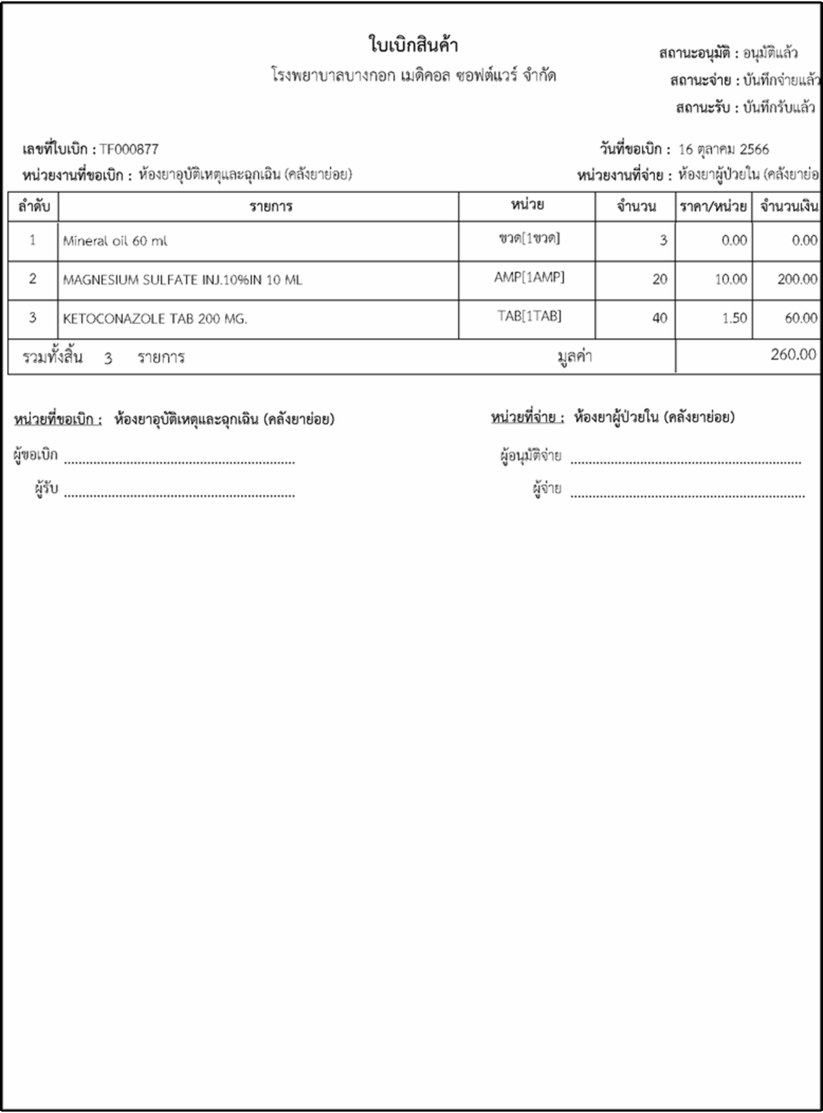 BMS INVENTORY ระบบขอเบิกสินค้าจากหน่วยจ่าย ระบบรายการขอเบิกสินค้าจากหน่วยจ่าย มีความสามารถ ดังนี้ สามารถระบุเบิกสินค้าระหว่างหน่วยจ่ายได้สามารถทำการอนุมัติหรือไม่อนุมัติใบเบิกได้สามารถออกใบเบิกจากจำนวนที่ต่ำกว่า MAX ได้โดยไม่ต้องคีย์รายการเอง แสดงหน้าจอทะเบียนรายการขอเบิกสินค้าจากหน่วยจ่าย แสดงหน้าจอบันทึกข้อมูลรายการขอเบิกสินค้าจากหน่วยจ่าย เอกสารแบบฟอร์มใบเบิกสินค้าระหว่างหน่วยงาน ← ย้อนกลับ