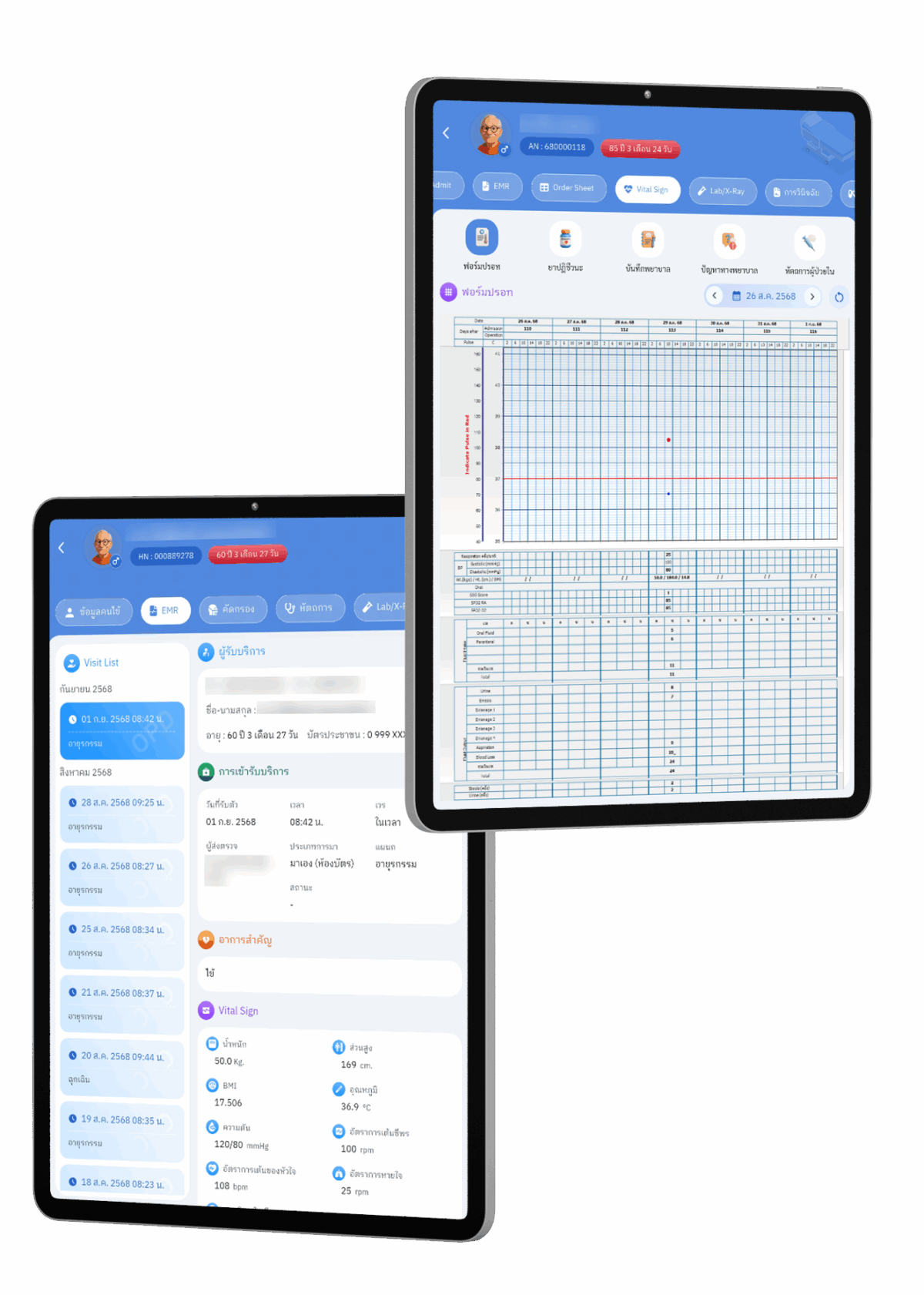 - รองรับการสั่ง Lab, X-ray, การปรับยา และบันทึกการจำหน่าย (Discharge Summary)